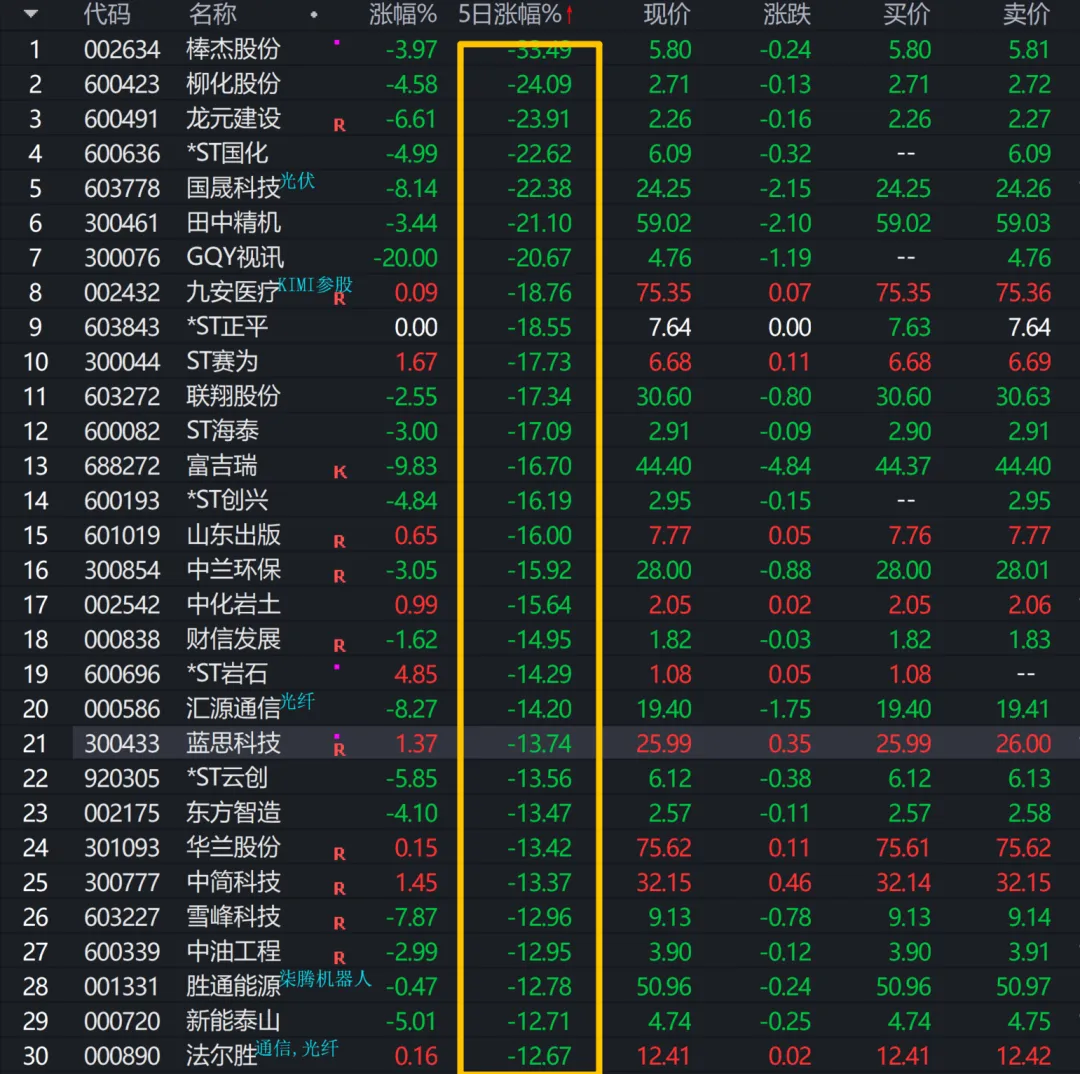 6)本周跌幅榜
