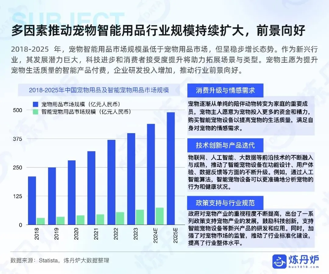 宠物用品行业是围绕宠物生活需求而兴起的产业,产品涵盖宠物食品、清洁护理用品、服饰出行用品、玩具、智能科技用品等多个类别。这些产品旨在满足宠物的基本生活需求,提高宠物的生活质量,同时也满足了宠物主人对宠物护理和宠爱的需求。近年来,随着社会经济水平的提升、居民收入的增加以及情感陪伴需求的增长,宠物用品行业呈现出蓬勃发展的态势,成为消费市场中一股不可忽视的力量。