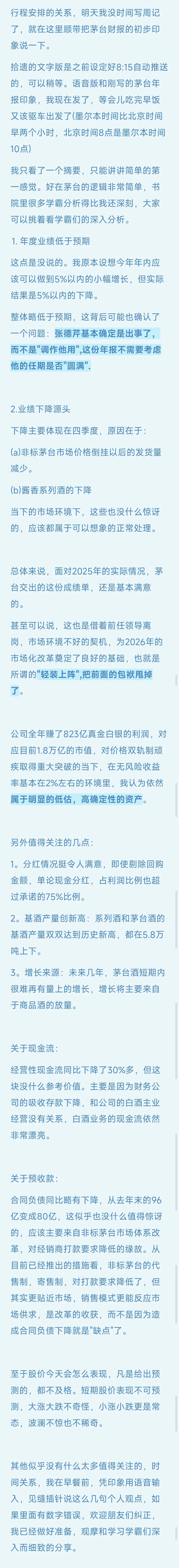 所以茅台酒今年,2026年,能卖多少主要取决于5年前的基酒产量。而5年前的基酒产量是已经定死了,在5年前的财报里边已经明确给出了。