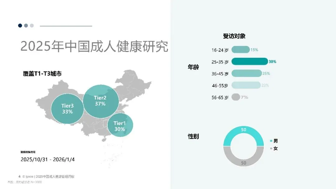 报告基于对全国T1-T3城市3000名成年消费者的调研,全面揭示了当前中国居民在健康管理领域的认知、行为与未来趋势: