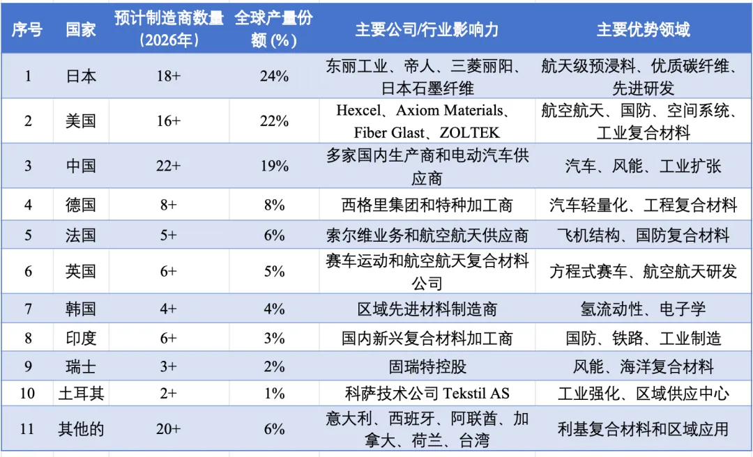 亚太地区是全球最大的碳纤维预浸料市场,在中国、日本、韩国和印度的推动下,2026年占据全球近41%的市场份额。东丽工业、帝人、三菱丽阳、日本石墨纤维等龙头企业均位于该区域,同时中国本土生产商正快速崛起。