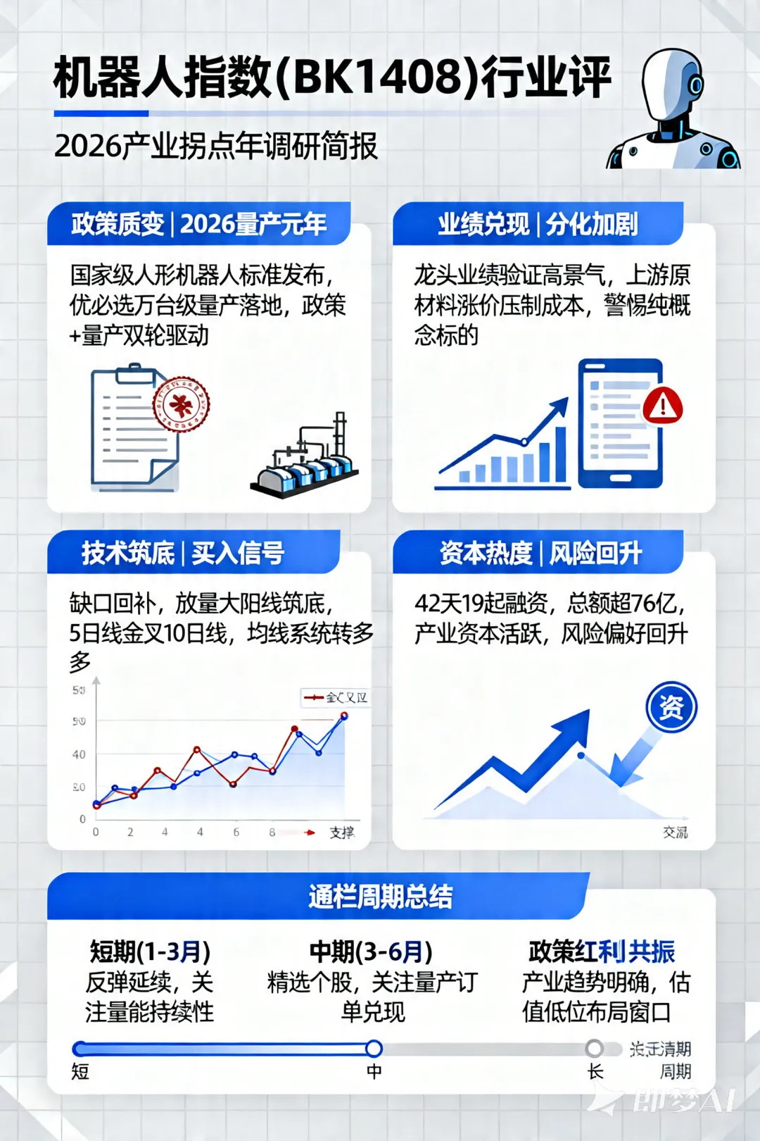 长期(6个月以上):政策红利持续释放(四川补贴至9月底)与商业化落地加速(万台级量产规模)形成共振,产业趋势确定性强。估值低分位提供了较好的长期布局窗口。