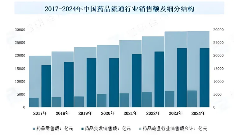 1.药品流通行业:进入平稳发展期,增速显著放缓。集中度持续提升,形成“5+N”(国药、上药、华润、九州通、重药控股+区域龙头)的头部格局。批发企业向全产业链服务商转型,零售连锁率有待进一步提升。