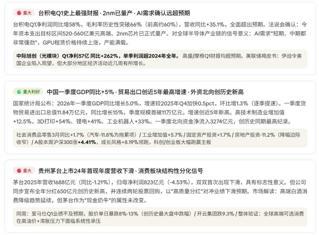 关于中国资产的中期逻辑切换:本周最重要的结构性变化是:2026年一季度北向资金净流入达3274亿元,创下历史同期最高纪录,净流入规模较2025年全年多出约400亿元。贝莱德、桥水基金、先锋领航等国际资管巨头同步加仓A股。这与中信证券的主线判断吻合:战争平息后,"PPI→企业盈利"的传导将成为A股最重要的基本面因素。一旦油价从$100+回落至$80以下,国内PPI将从战争冲击的负贡献转为正贡献,传导至化工/制造/消费链的盈利修复,这才是A股后续能否突破4000-4200区间的核心变量,而非仅靠情绪修复。