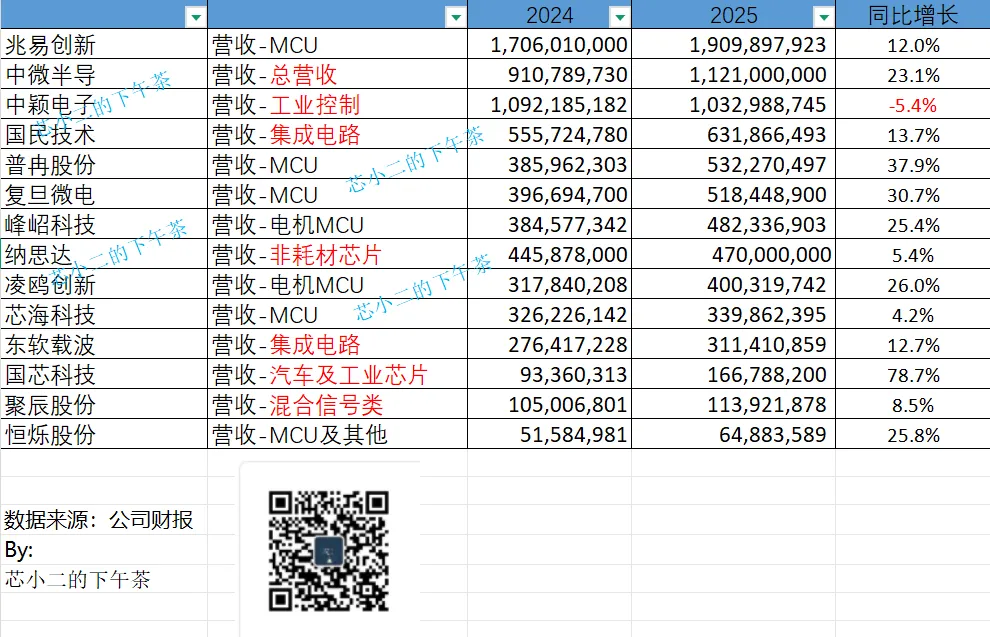说明:下表统计口径和MCU营收表格略有差别(引用AI生成的,统计类目见括号内)
