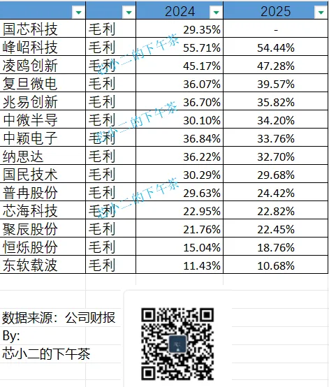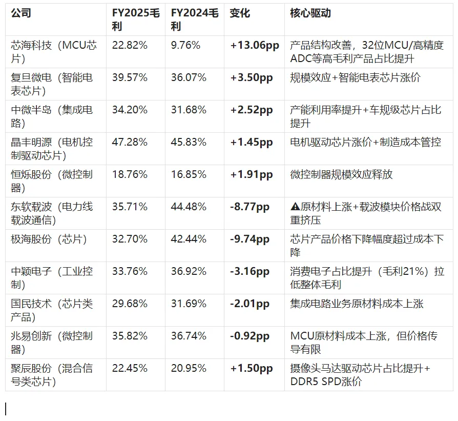 说明:下表统计口径和MCU毛利表格略有差别(引用AI生成的,统计类目见括号内)