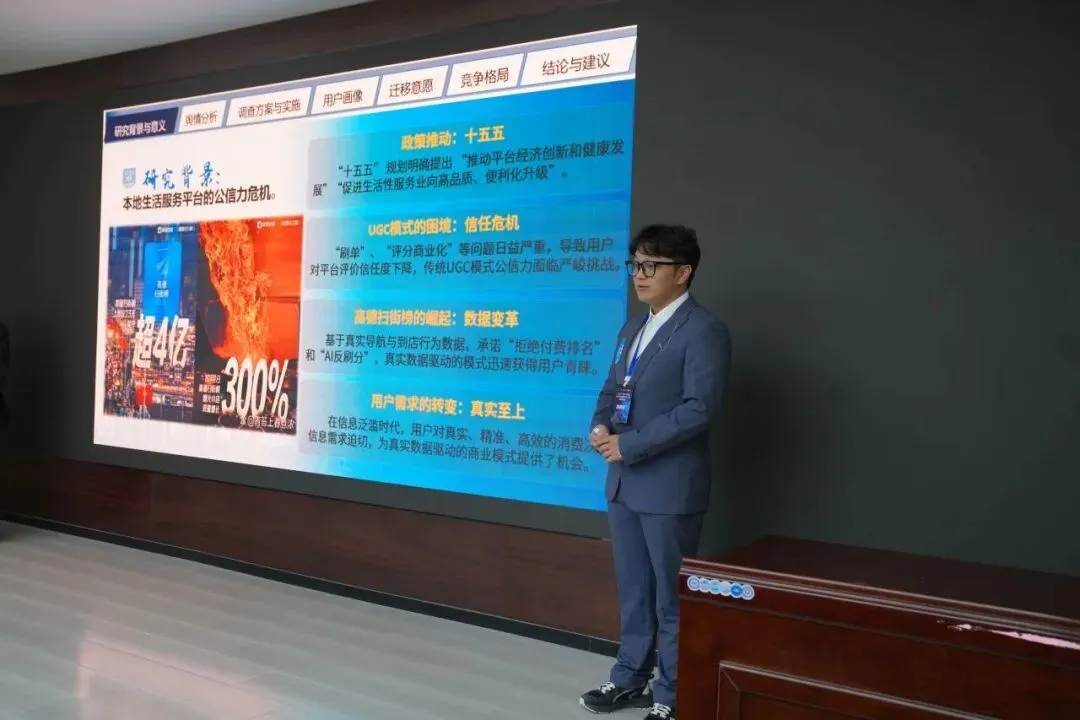 比赛环节,参赛作品紧密围绕国家发展大局与社会民生热点,涉及数字经济、文化创新、消费变革、基层治理等多个领域,各参赛队伍通过报告陈述展示了各自扎实的专业基础、详实的调研数据与严谨的分析论证;评审专家围绕选题价值、调研方法、实践意义与创新亮点等方面展开细致评审。