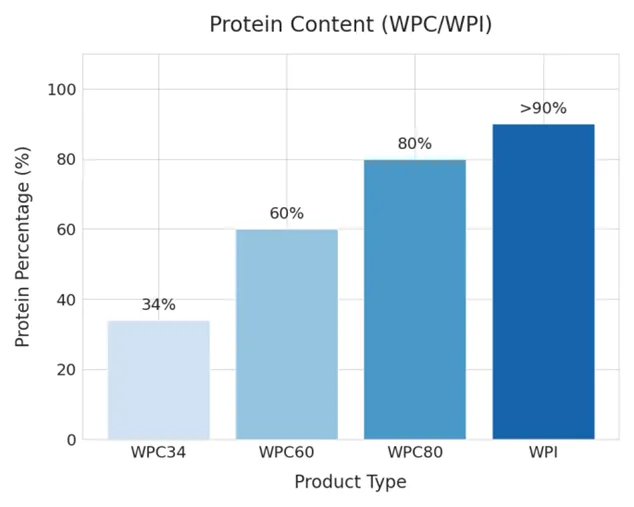 WPC34-WPC60:这类低蛋白含量的浓缩物保留了较高的乳糖和脂质含量,通常被视作脱脂奶粉的经济型替代品,广泛应用于烘焙、糖果制造及饲料行业。其功能性更多体现在乳化性和口感改良上,而非纯粹的蛋白补充。