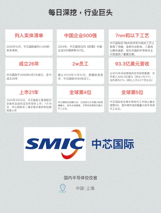 2025年中芯国际营收93.3亿美元,同比增16.2%;净利润50.4亿人民币,同比增24.9%,业绩持续走强。