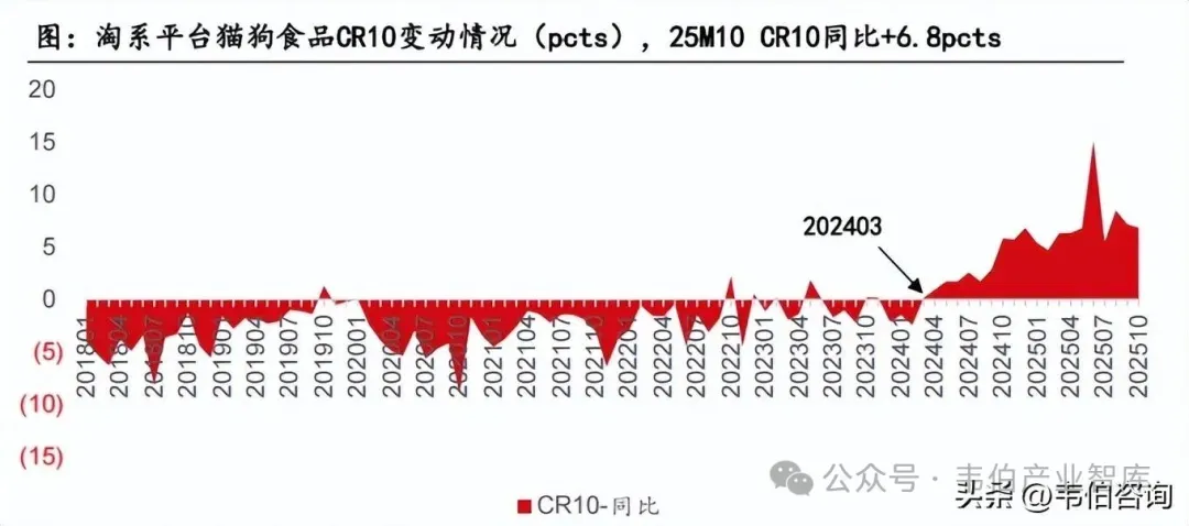 宠物食品行业整体集中度持续提升,但头部品牌竞争仍较激烈。
