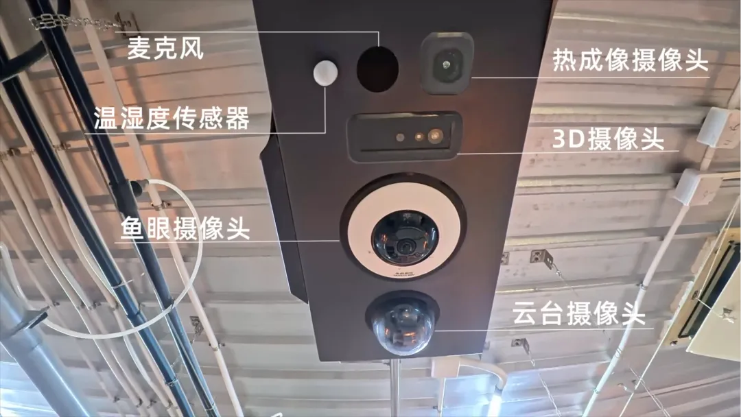 健康管理的AI化更加明显,传统养殖中饲养员需要日行万步,花费大量时间巡栏,观察猪只的精神状态、采食情况、粪便形态等来判断其健康状况。而在长岭养殖场内,悬挂于轨道的巡检机器人搭载着鱼眼摄像头、云台摄像头、热成像摄像头、3D摄像头、温湿度传感器等多种传感器,能够自动执行盘点猪只、估测体重、评估背膘(肥瘦程度)及筛查体温异常等任务。