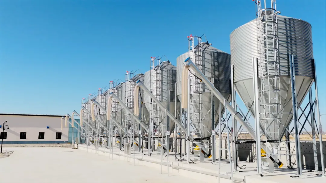 与此同时,料塔自带的高精度称重功能,持续监测全场饲料消耗情况,料线系统保障供给稳定。每一台饲喂器不仅是执行终端,也自动记录实际采食数据,并实时回传至中央系统。这些数据与巡检系统反馈的生长信息进行比对,形成“投喂—采食—生长”的完整闭环,持续优化饲喂策略。