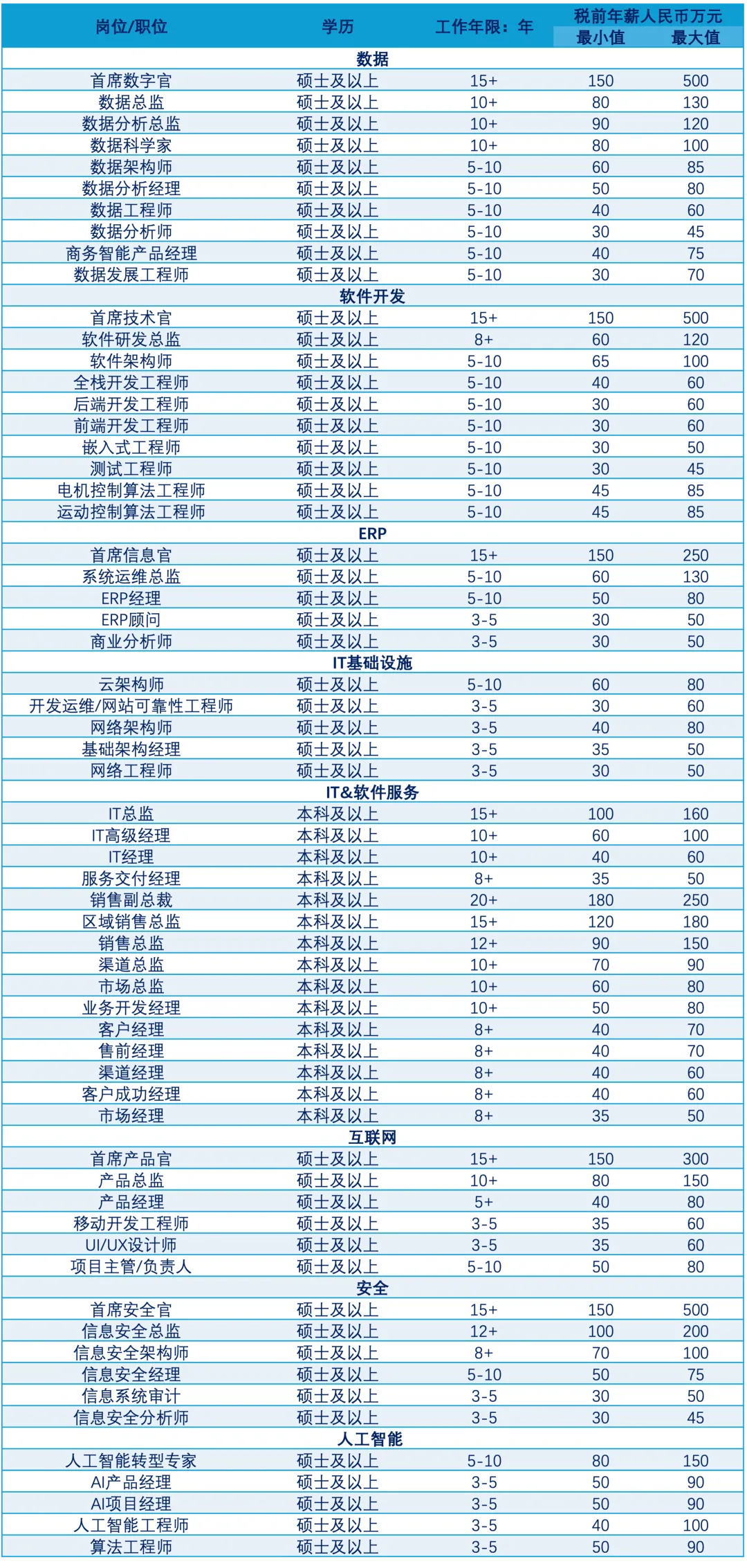 备注:上述年薪以一线城市为参考。