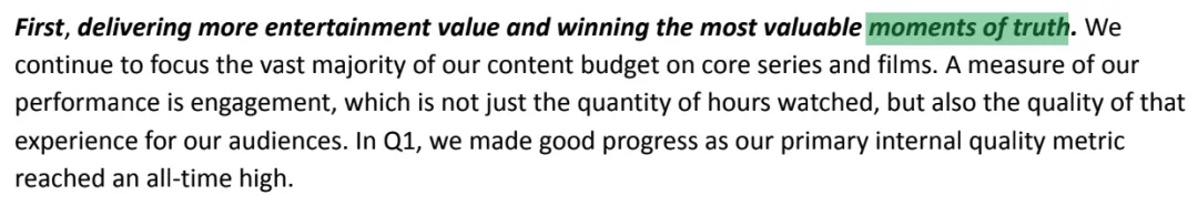 Netflix 给这个战略起了一个名字,写在股东信的第一节标题里:Moments of Truth。