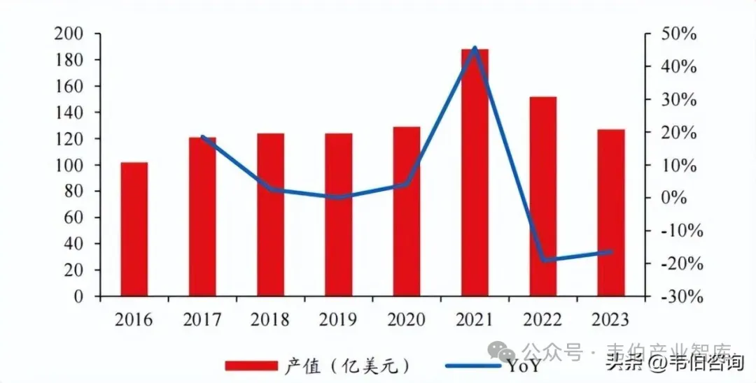 2016-2023年全球刚性覆铜板产值