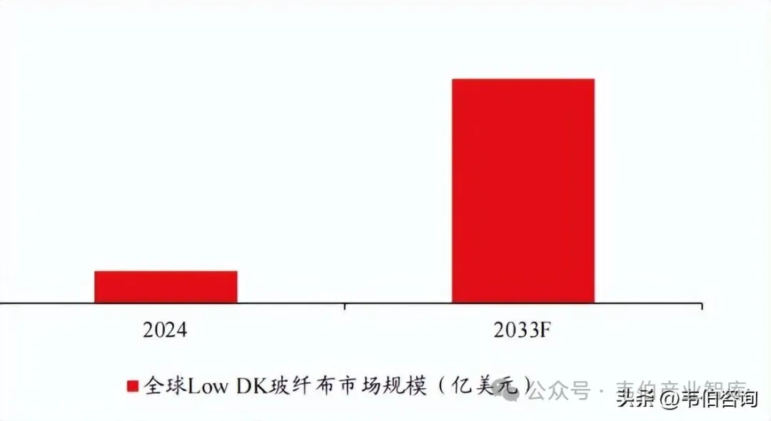 根据BusinessResearchInsights数据,2024年全球低介电(LowDk)玻璃纤维市场规模约2.8亿美元,预计2033年将增至19.4亿美元,期间CAGR高达23.8%。