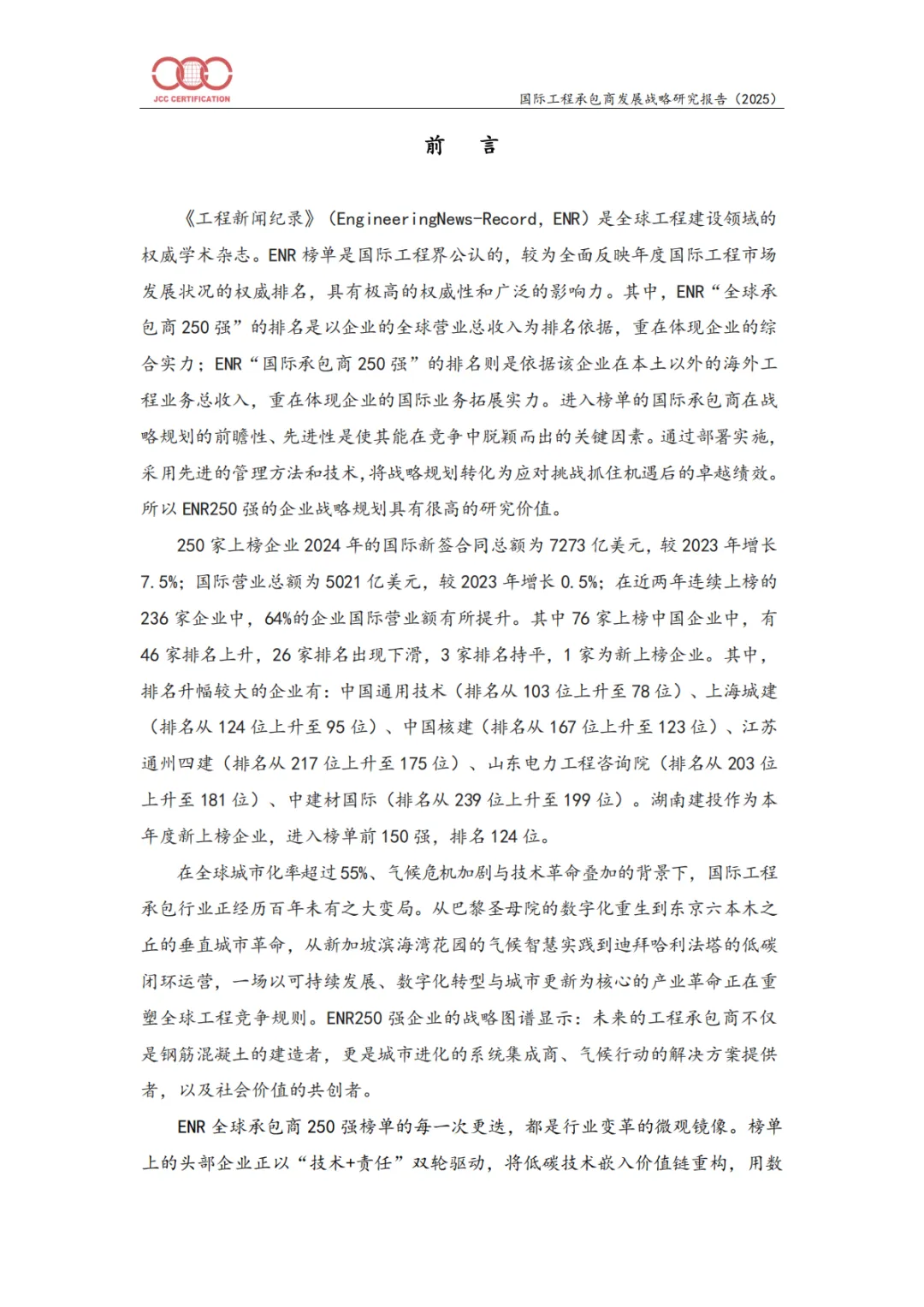 这份报告以权威的ENR(《工程新闻记录》)榜单为基准,系统剖析了全球顶尖250家国际承包商的发展态势、战略转型与核心能力建设。报告不仅是一份行业数据汇编,更是一份旨在指引中国建筑业(及全球同行)在“百年未有之大变局”中实现高质量发展的战略路线图。