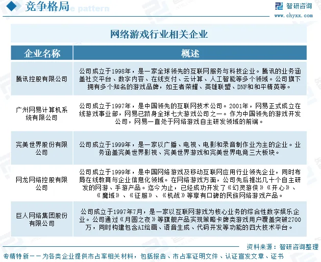网络游戏行业竞争格局
