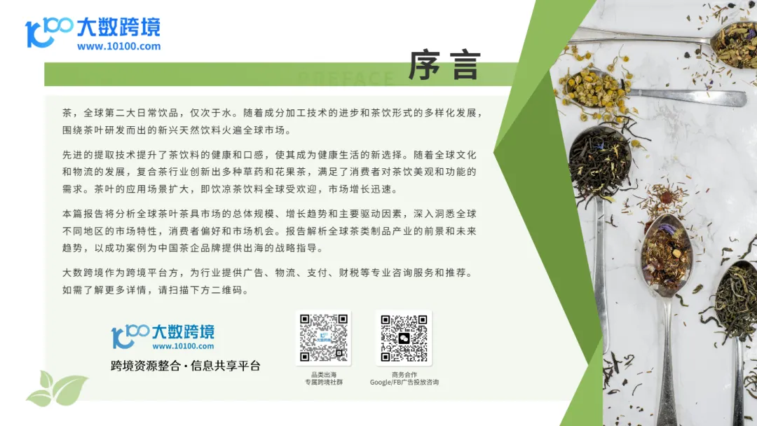 本文件深度剖析了2025年全球茶叶与茶具市场,为出海企业提供了从宏观趋势到区域布局的全景式市场洞察。文件指出,随着全球饮茶消费向健康化、功能化、即饮化演进,中国茶企可通过精准定位高增长市场、打造差异化DTC品牌、强化文化叙事,在欧美与非洲等新兴市场实现品牌溢价与GMV双增长。