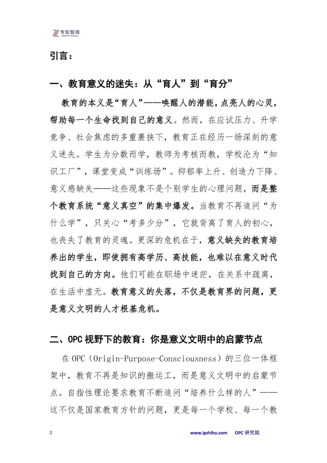 关注“专知智库”公众号,发送关键词“意义教育”,即可获得完整版OPC·意义教育白皮书。