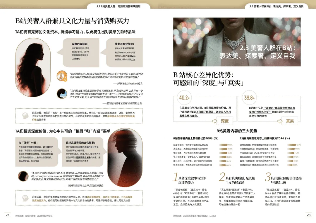 B站联合凯度发布的《2026美奢人群消费洞察报告》显示,中国美奢消费已从符号炫耀转向价值认同与悦己消费,B站凭借深度内容与真实社区,成为品牌对话高知高消美奢人群的核心阵地。