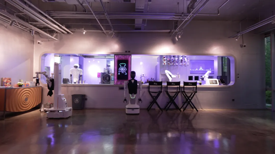 在体验经济场景中:机器人焰究所的价值逻辑更直接。它把整个服务链条作为一个可观看、可互动、可拍照分享的展演系统。激光雷达导航的送餐机器人、机械臂清洁机器人、人形机器人表演……这些技术落点不是为了代替人工降低成本(至少现阶段不是),而是为了“制造差异化的体验密度”。