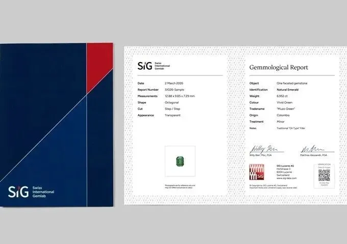 阿莱桑德里补充道:“对于符合定义标准的宝石,我们的鉴定报告中可标示经市场广泛认可的行业术语,如‘鸽血红’、‘皇家蓝’及‘穆佐绿’。每份报告均附有独立条形码,客户可通过扫描该条形码验证报告真伪、下载电子副本,并查看高分辨率宝石照片及视频等附加内容。”