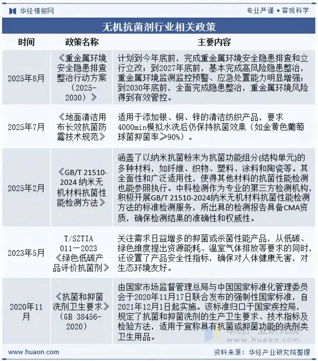 相关报告:华经产业研究院发布的《2026-2032年中国无机抗菌剂行业发展前景展望及投资战略研究报告》