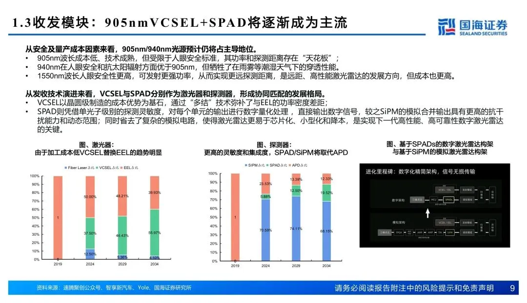 技术路线基本没悬念了。半固态一维转镜成了主流量产方案,芯片化和数字化把BOM打了下来,905nm VCSEL+SPAD搭配站稳主流。价格端,从2020年到现在降了约90%,部分产品到200美元区间,再往下打的空间不大,价稳了。