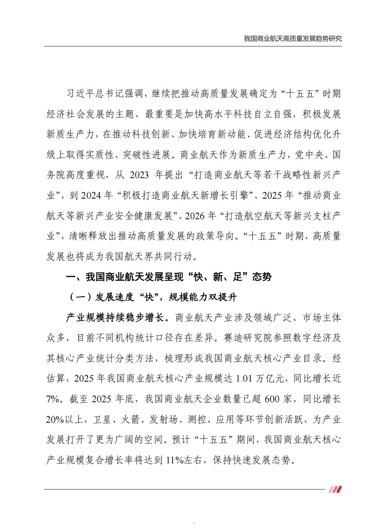 报告首先用数据确立了商业航天的“江湖地位”。根据赛迪智库的统计口径,2025年被视为我国商业航天从理念共识走向行动实践的关键节点。