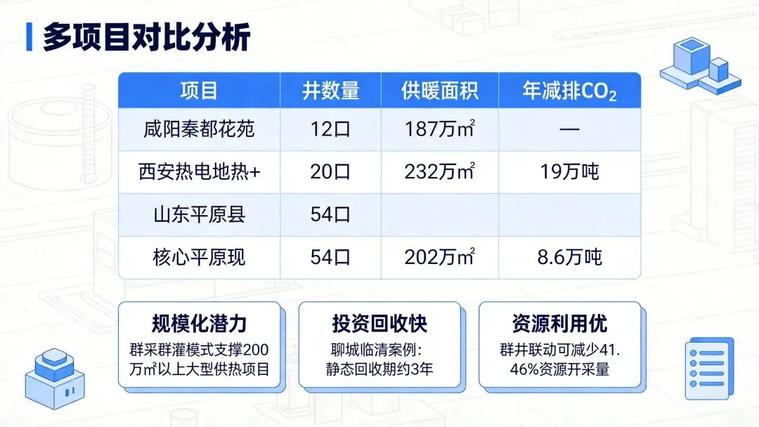 4. 规模化路径清晰:群采群灌+多能互补是地热供暖规模化发展方向