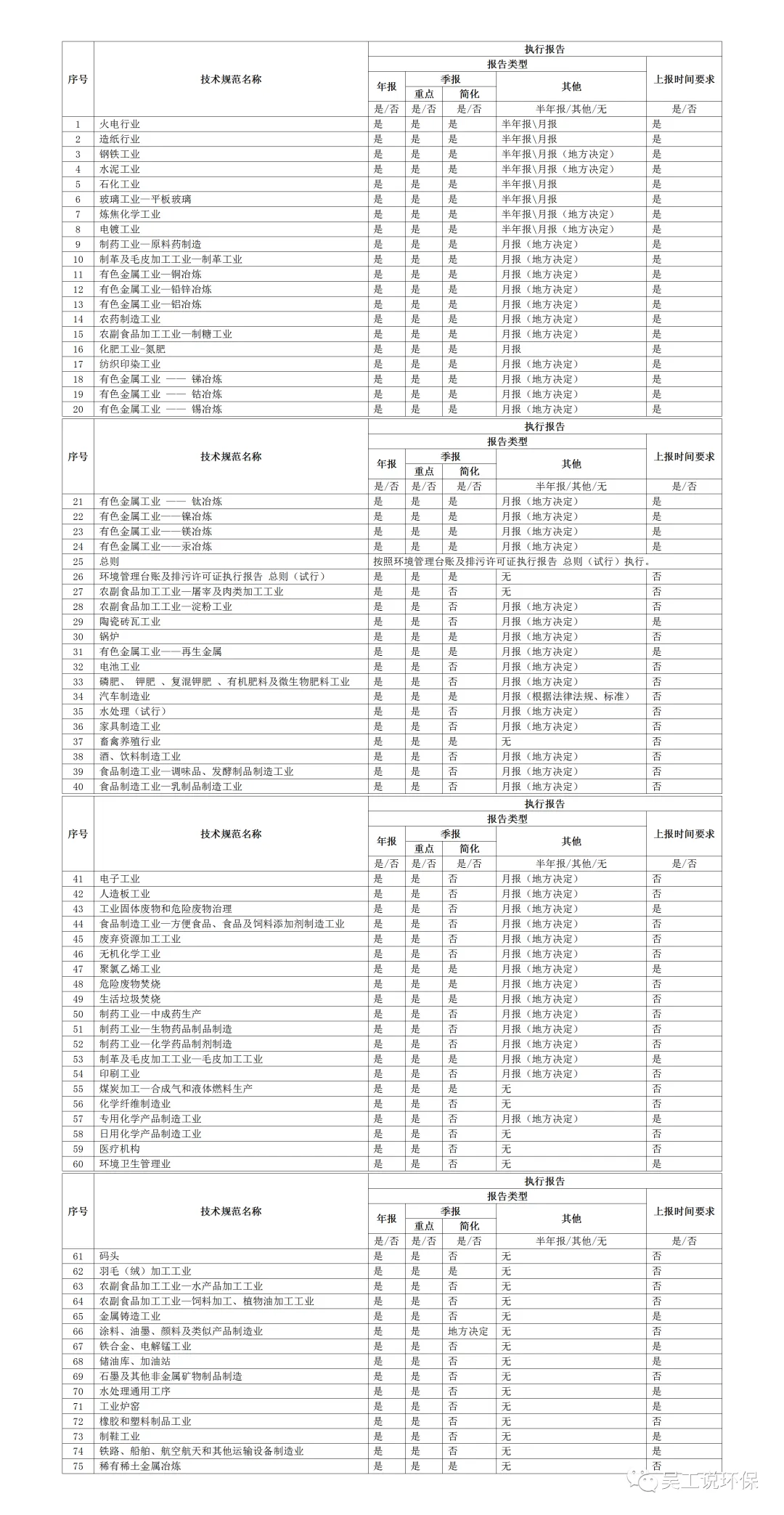 但是每个行业技术规范对于执行报告提交要求,并不一样,梳理如下: