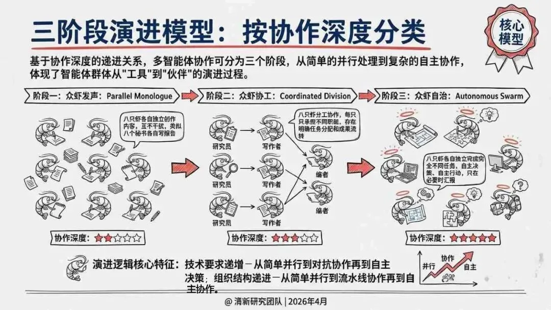 今日推荐行业研究报告:OpenClaw群虾研究报告:多智能体协作的不同模式、演进阶段与组织形态分类学·演进模型·组织形态·跨平台通信(内容出品方:清新研究)点击上方图片进入小程序top行业报告首页搜索“群虾研究”查阅下载全文。