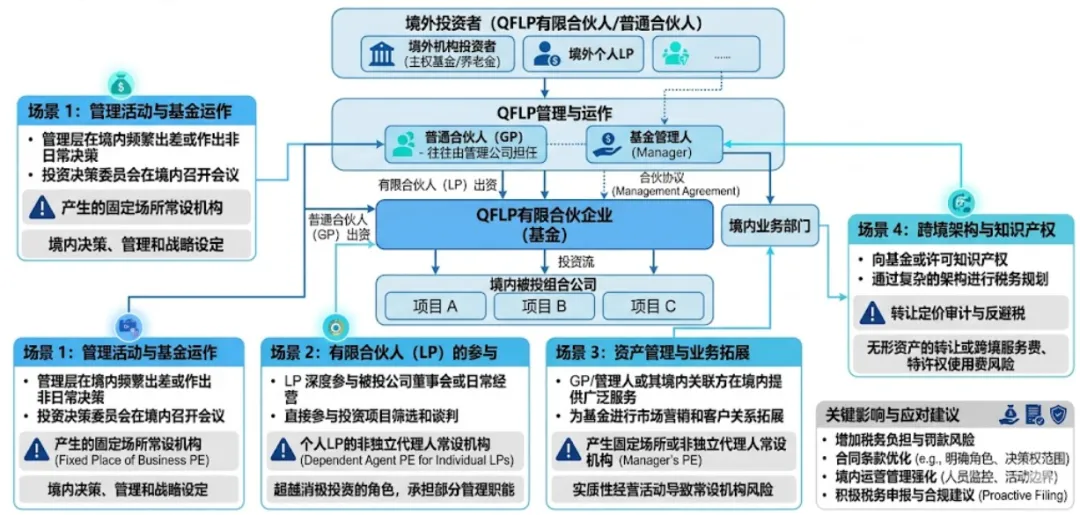 防御性架构自查:存量与增量QFLP必须对其法律协议(LPA)及运营实质进行深度穿透自查。明确界定LP的纯财务投资属性。若LP保留了实质性的管理权限、重大事项的一票否决权,或长期向境内派驻投决人员,其触发固定场所型或代理型常设机构的风险将呈指数级上升。