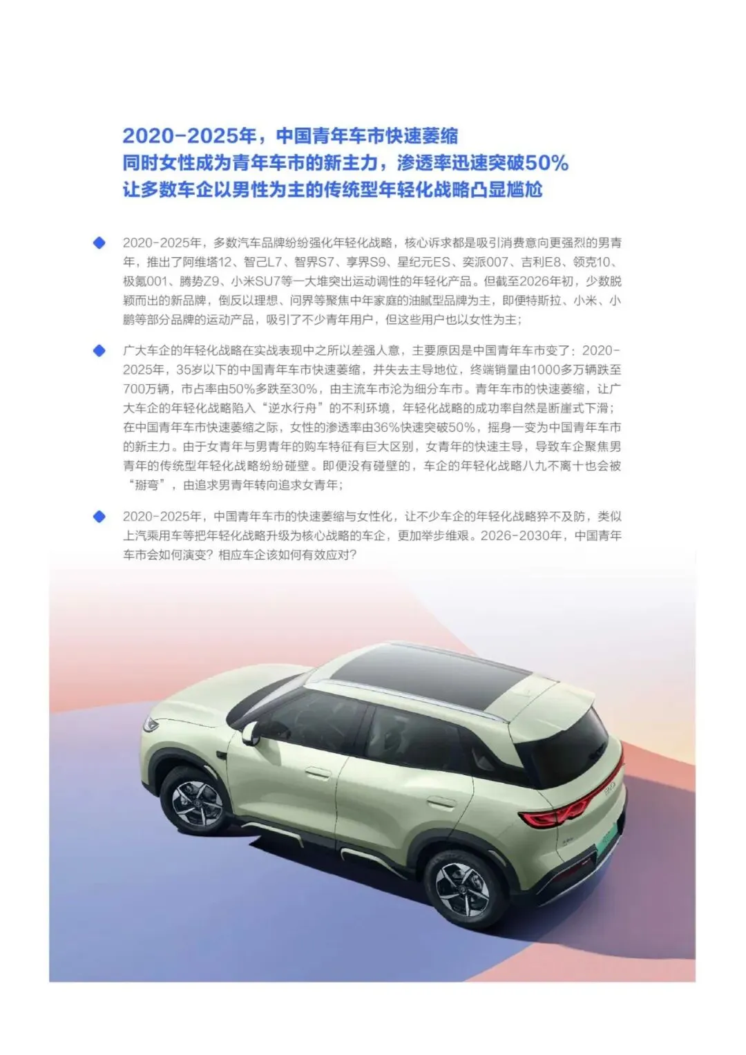 暗号:2026年女青年车市洞察报告:女青年“掰弯”车企年轻化战略-27页