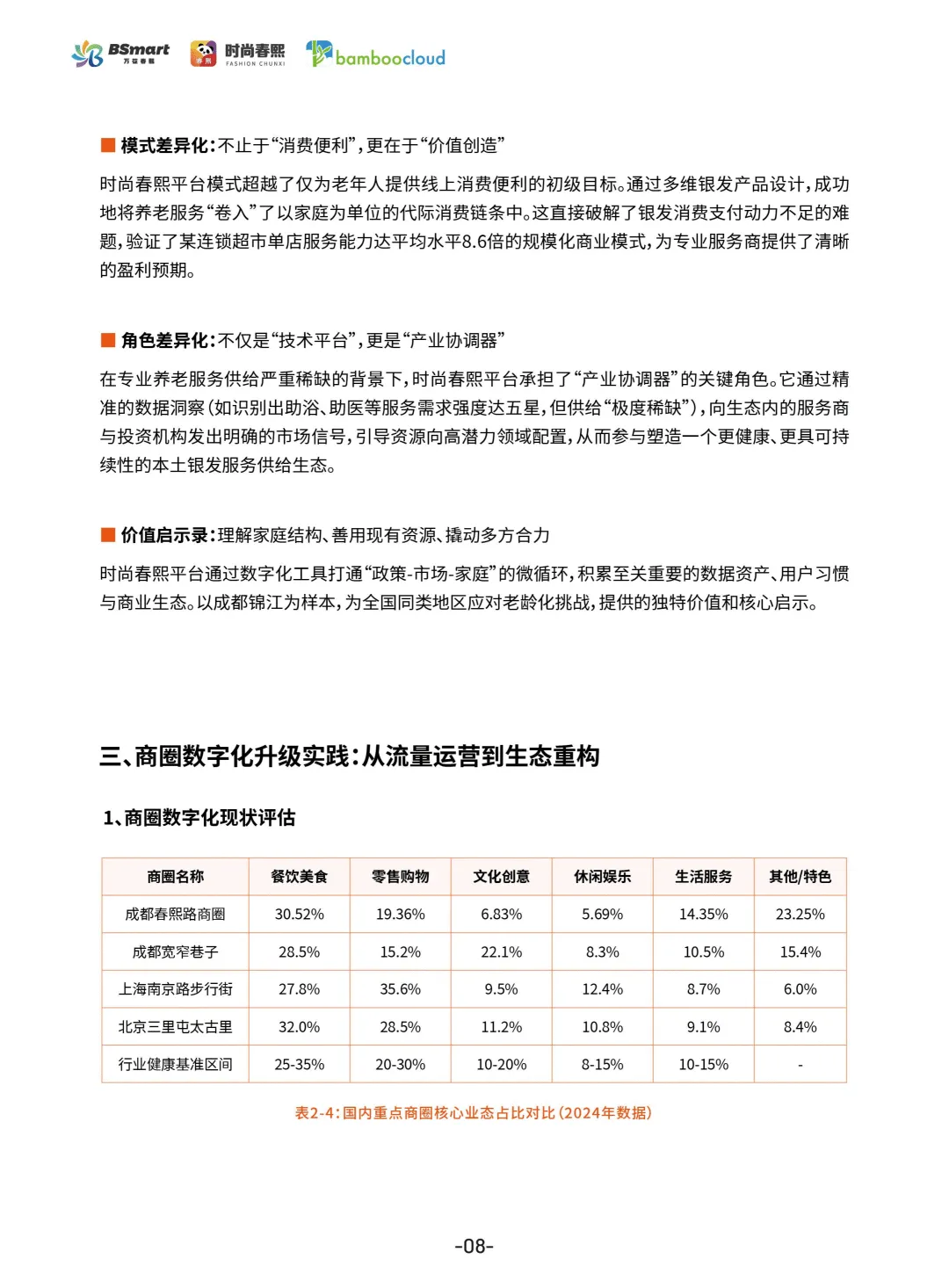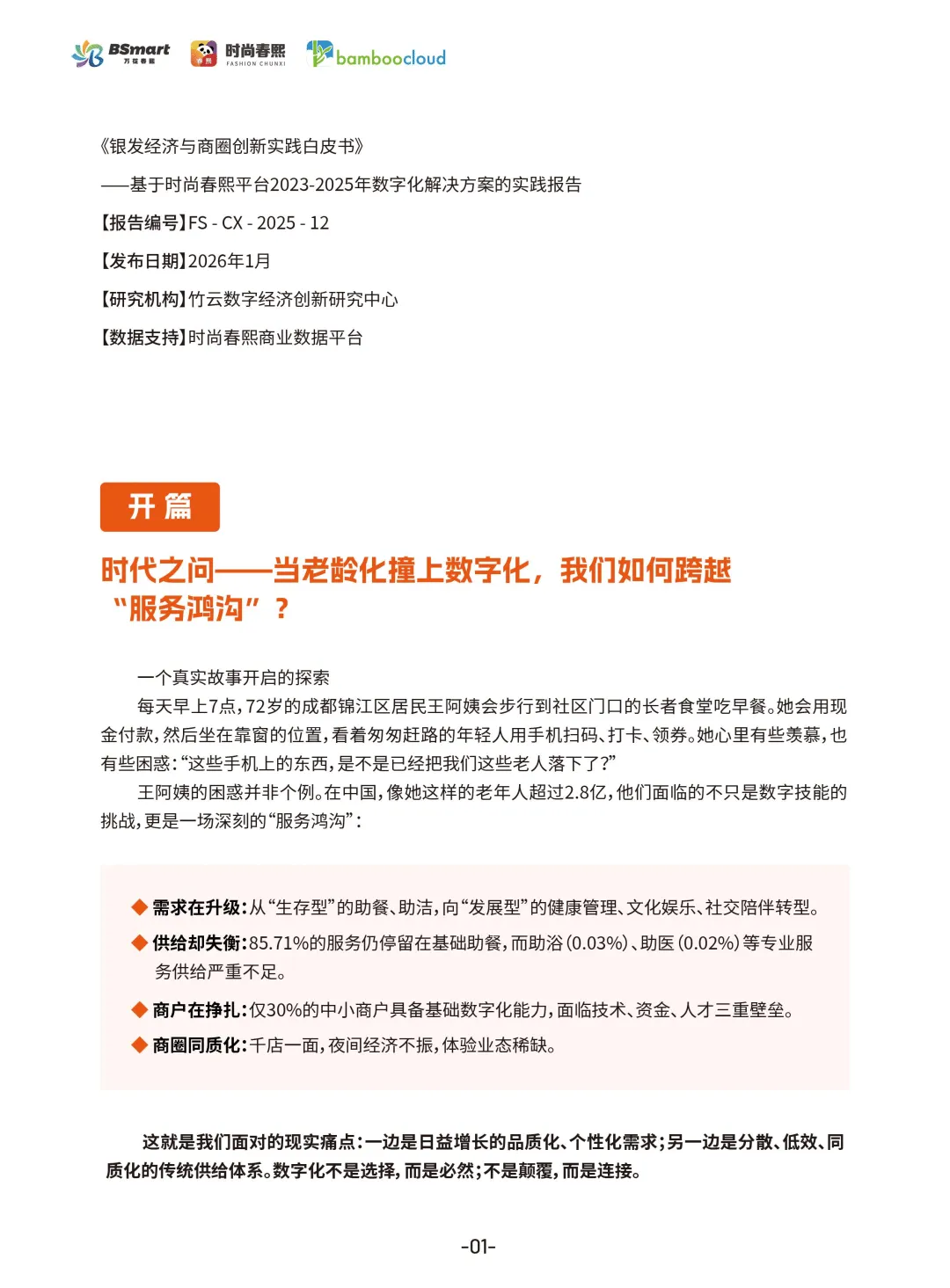 白皮书基于时尚春熙平台2023-2025年数字化实践,聚焦老龄化与数字化融合背景下的服务鸿沟问题,探索出以技术赋能、数据驱动、生态协同为核心的城市商业与银发服务融合发展路径,为商圈升级与养老服务数字化提供可复制实践方案。