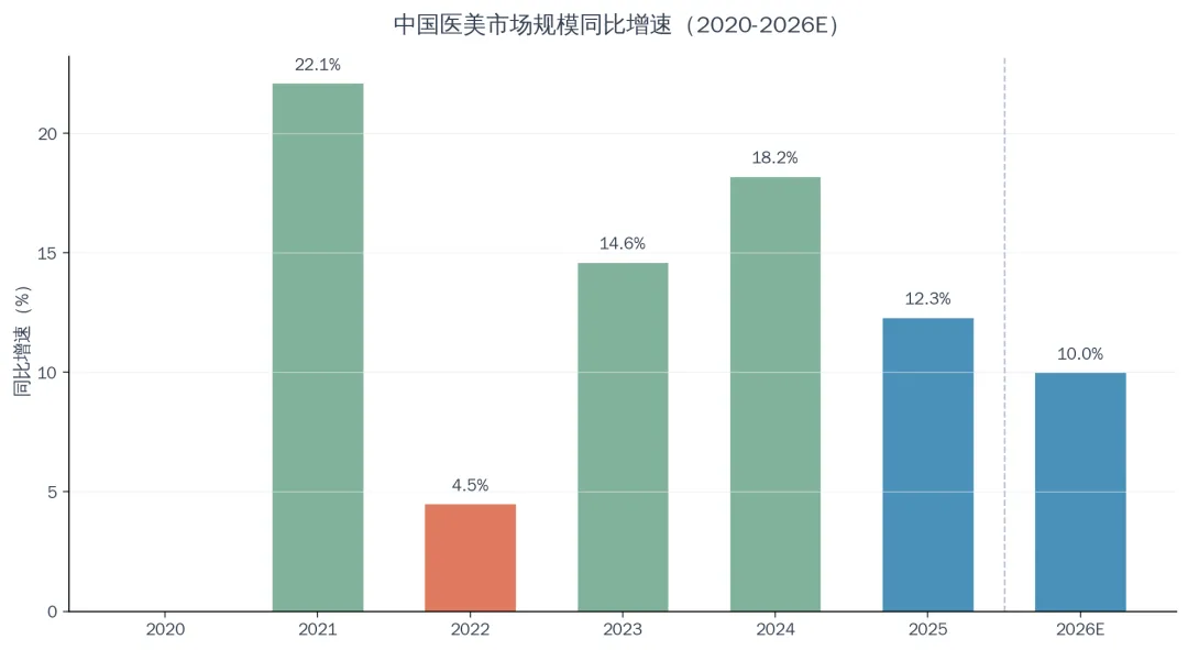图 4:中国医美市场规模同比增速(2020-2026E)