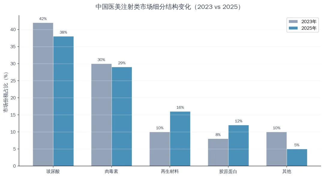 图 6:中国医美注射类市场细分结构变化(2023 vs 2025)