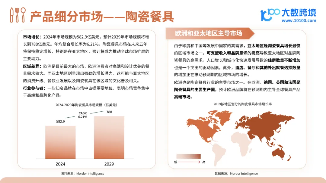 • 线上渠道占比仅34.4%,但增长潜力巨大:目前线下仍为主流(65.6%),但疫情后线上购物习惯养成,尤其在高端餐具市场,消费者更愿通过独立站比价、看评、选购,独立站+社媒引流模式正成为新增长引擎。