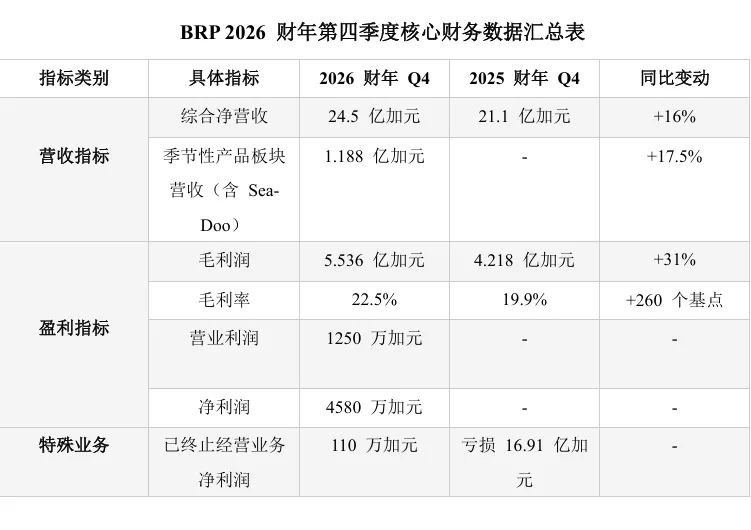 BRP发布2026 年第四季度及全年财报,增长超预期!