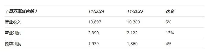 这家全球涂料制造商在2024年前四个月的总销售额增加到108.97亿挪威克朗(10.3亿美元),同比增长5%。主要驱动力是销量增长。营业利润为23.9亿挪威克朗(2.26亿美元),比去年同期增长13%。税前利润为19.39亿挪威克朗(1.82亿美元),比去年同期增长4%。