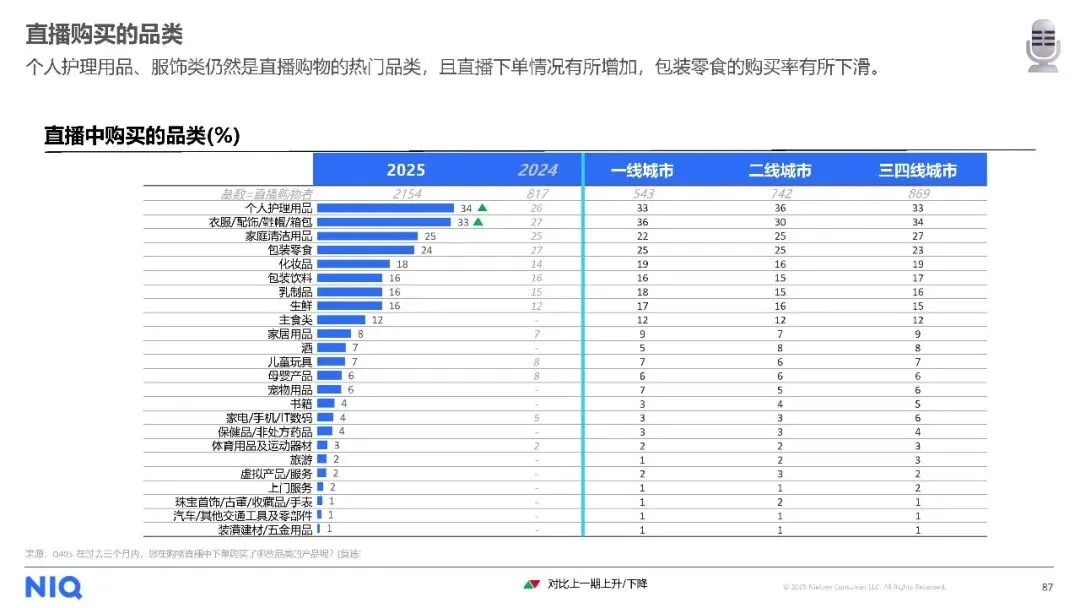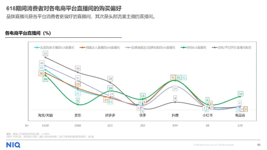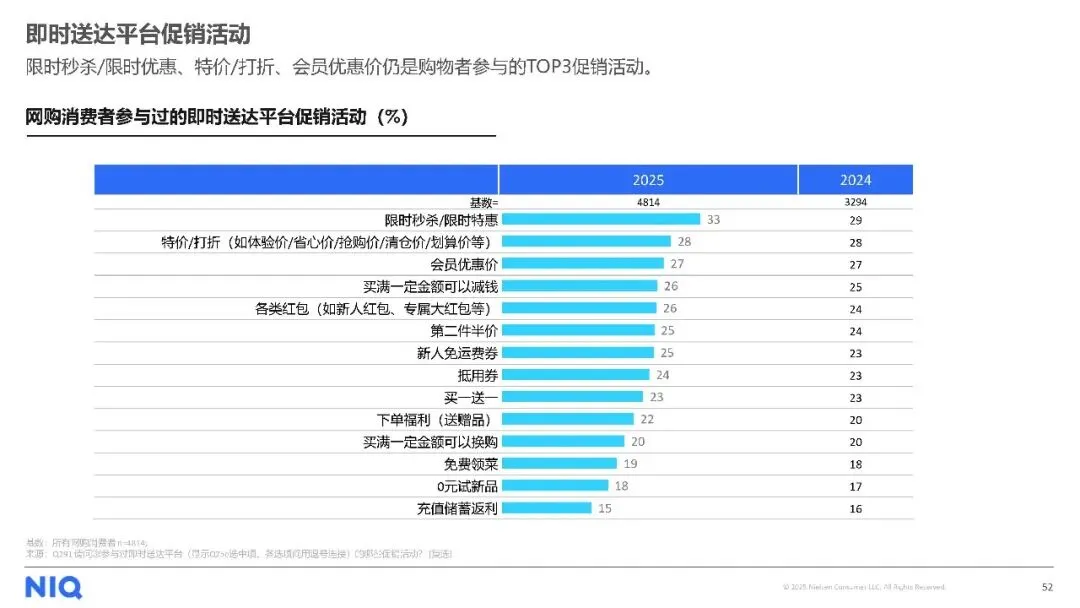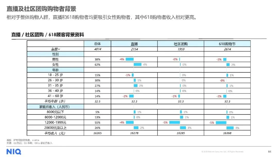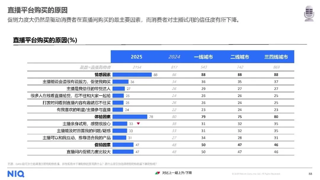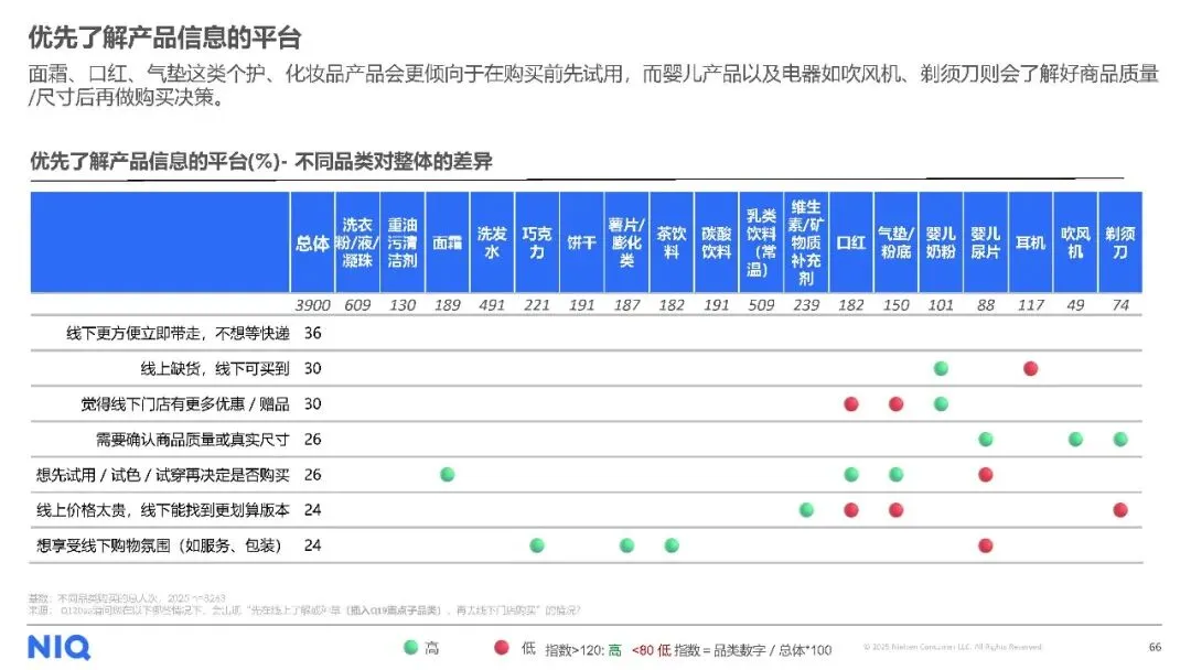 消费者的购物心态正在发生根本性转变。越来越多人倾向于即时消费,不再刻意等待折扣。31% 的消费者表示想买就买,不会对比价格也不会等优惠,这个比例比去年上升了 2 个百分点。只有 22% 的人会等到有折扣再购买,比去年下降了 2 个百分点。不同品类的价格敏感度差异巨大,吹风机和洗发水等个护产品价格敏感度最低,消费者更愿意即时下单。而气垫粉底剃须刀耳机和保健品等高客单品类,超过三分之一的消费者会先在多个线上平台比价后再购买。