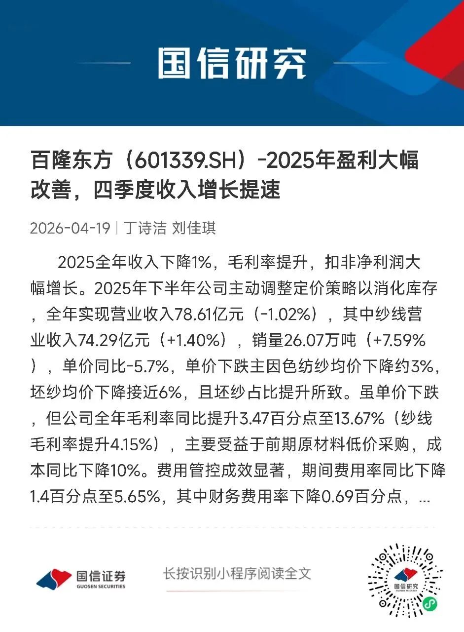 文字节选自报告《国信证券-百隆东方(601339.SH)财报点评:2024年收入增长15%,扣非净利润同比转盈》,进入小程序查看报告全文