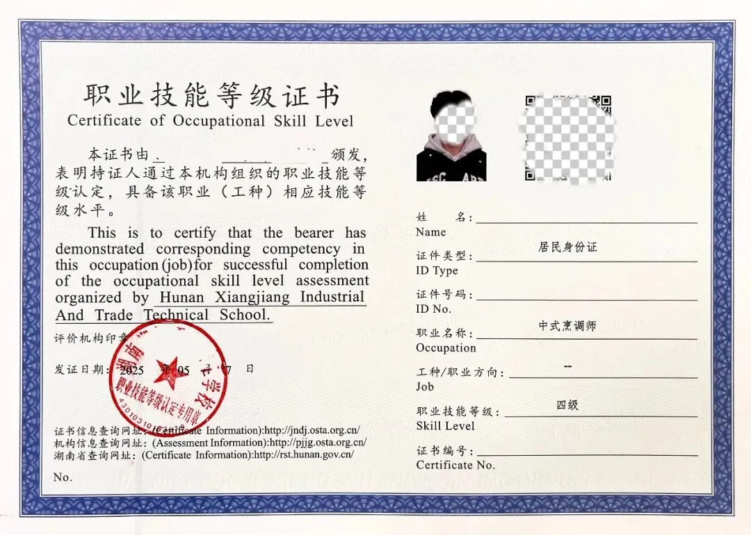 3. 技能证书加持:在校可考中式烹调师、西式面点师、营养配餐师等职业技能等级证,证书全国通用,是升职加薪、开店上岗的重要凭证。