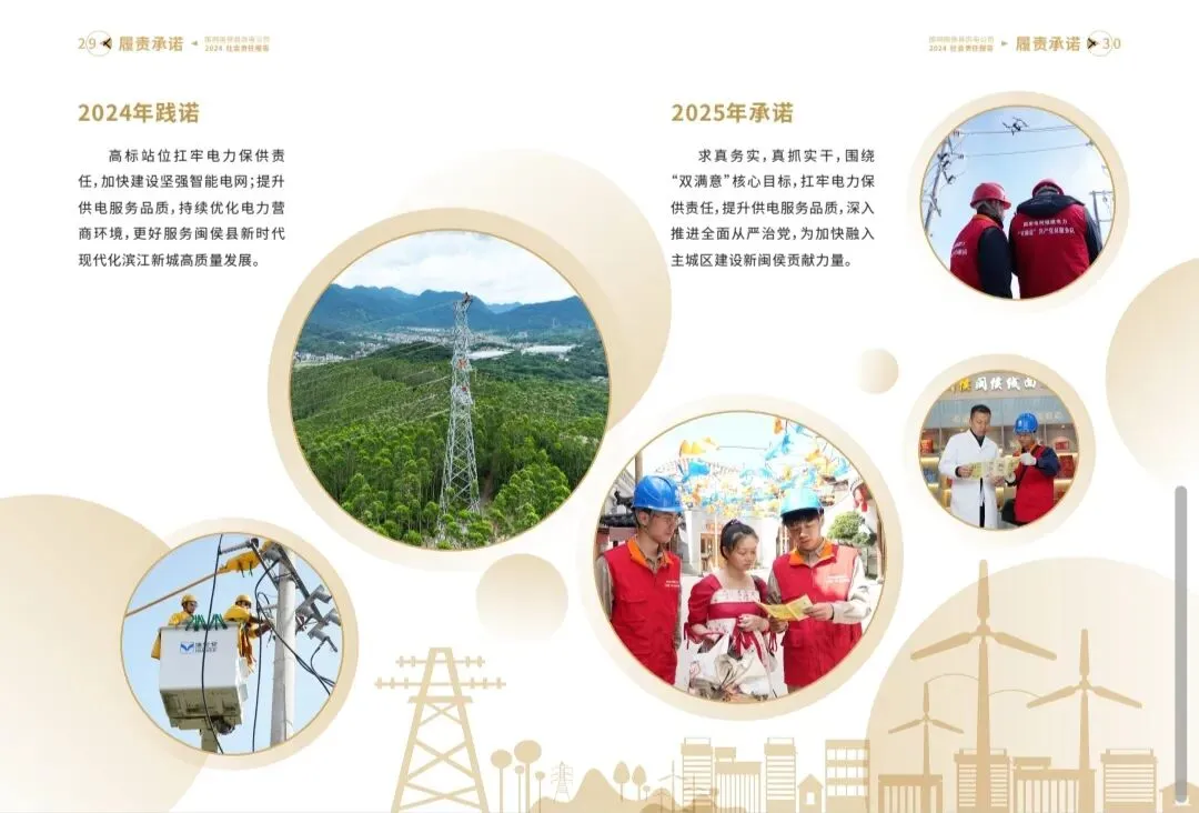 报告重点回顾了国网闽侯县供电公司一年来发展成就、2024年履责行为,并对2025年履责作出承诺。