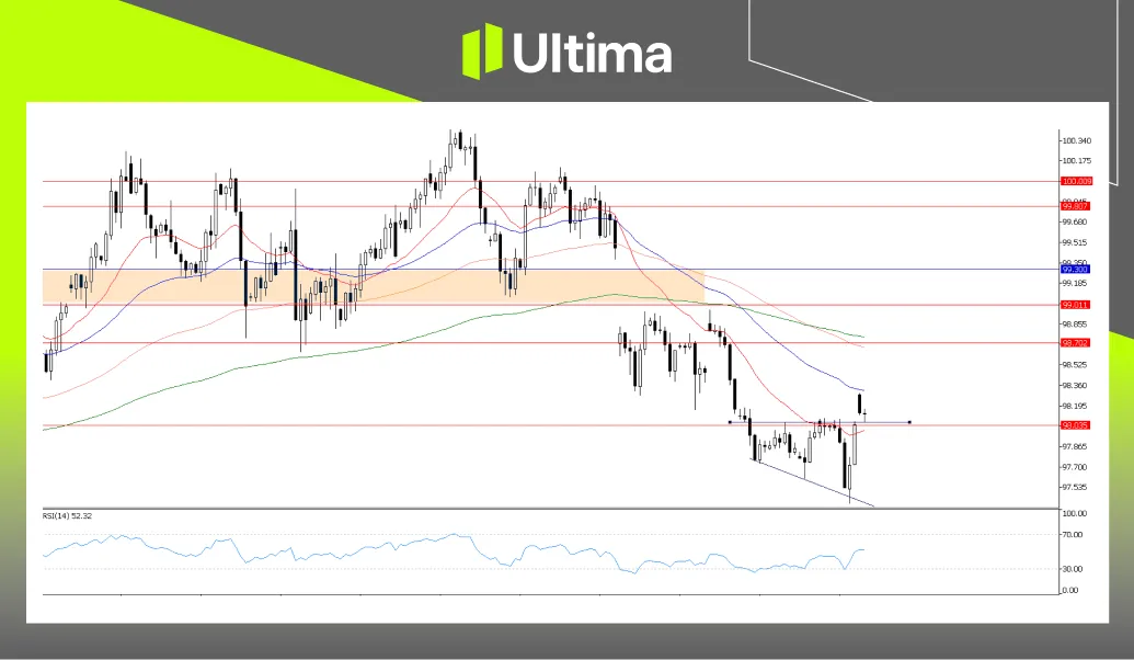 技术上,若重返98.00上方,表明多头仍在防守该区域,使其成为短期关键枢纽水平。