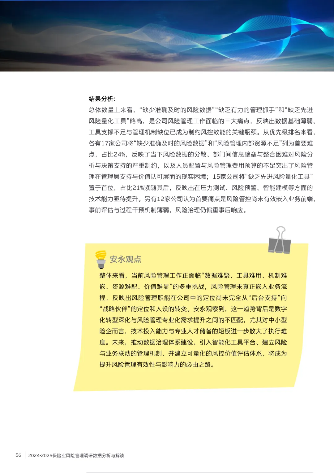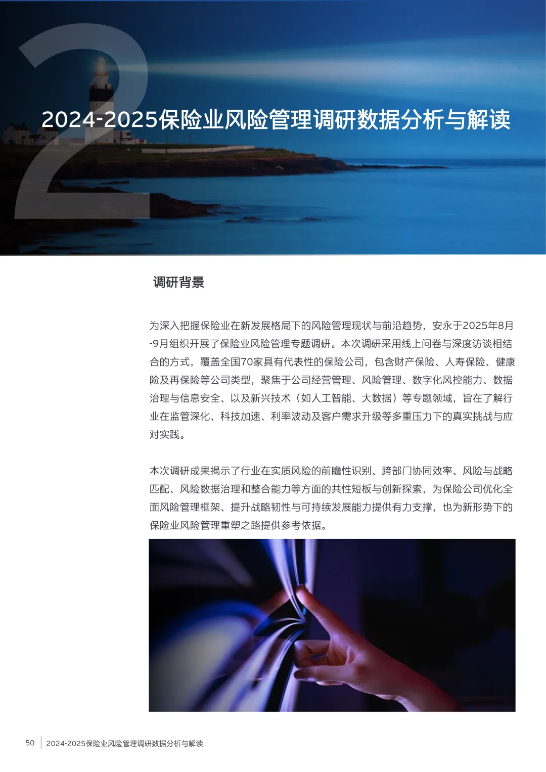 今天我们开始分享《2024-2025保险业风险管理白皮书》的第二部分:2024-2025保险业风险管理调研数据分析与解读。