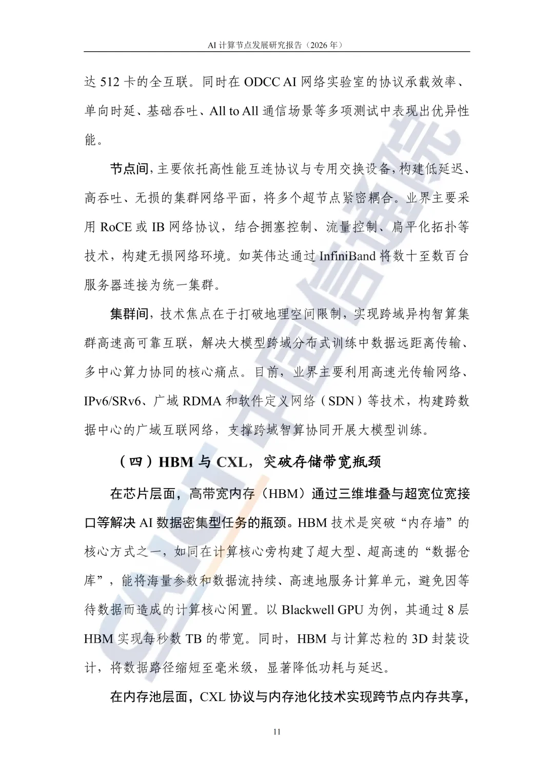 AI 计算节点通过整合多算力芯片形成规模化计算单元,有效破解大模型训练中的协同效率难题。核心技术创新成效显著:节点架构从 “CPU 为中心” 转向 “GPU 互联为中心”,异构计算与 Chiplet 封装技术实现算力密度突破,HBM 与 CXL 技术打通存储带宽瓶颈,超低时延网络与智能调度系统进一步提升资源利用率,液冷技术则为高密度部署提供绿色低碳支撑。