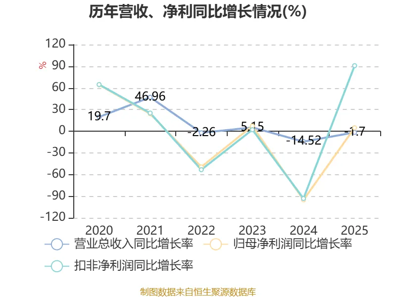 4月17日,A股上市公司东方雨虹(002271)发布2025年全年业绩报告显示,营业总收入275.79亿元,同比下降1.70%,净利润1.13亿元,同比增长4.71%。
