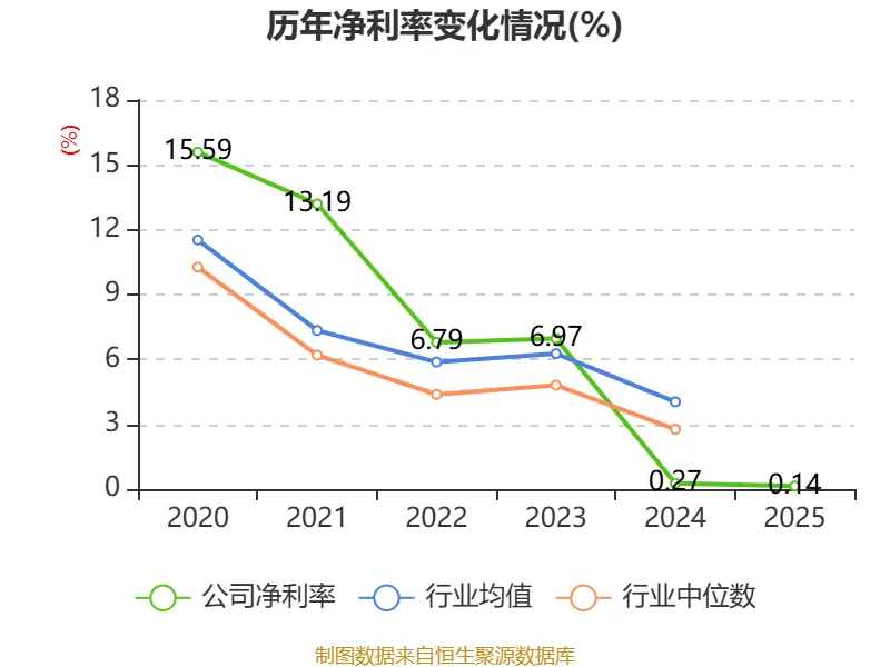家居新范式注意到,近年来,东方雨虹的人均创利情况出现断崖式下降,2023年、2024年、2025年人均创利分别为17.85万元、0.99万元、1.1万元,同期的毛利率分别为27.69%、25.8%、24.82%,净利率分别为6.97%、0.27%、0.14%。